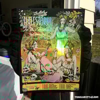 Official foil variant poster from Halestorm's Fall 2019 European tour with In This Moment and New Years Day. Artist edition of 40. Screenprinted by Lady Lazarus in 6 colors on 100# Rainbow Foil stock. 18x24", signed and numbered by the artist. Comes rolled in a heavy tube, insured for protection.